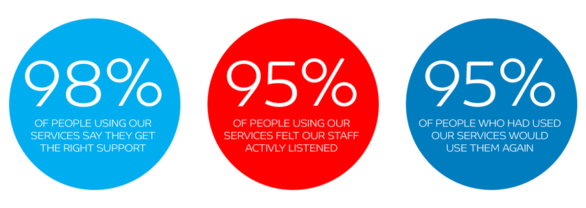 Our aim is to deliver a better life for people severely affected by mental illness. We do this by not only meeting their mental health needs but also helping them to improve their physical health, take control of their lives and establish a sense of belonging to their community. 98% of people who use our services said they got the right level of support from us and 97% felt supported in achieving their goals.